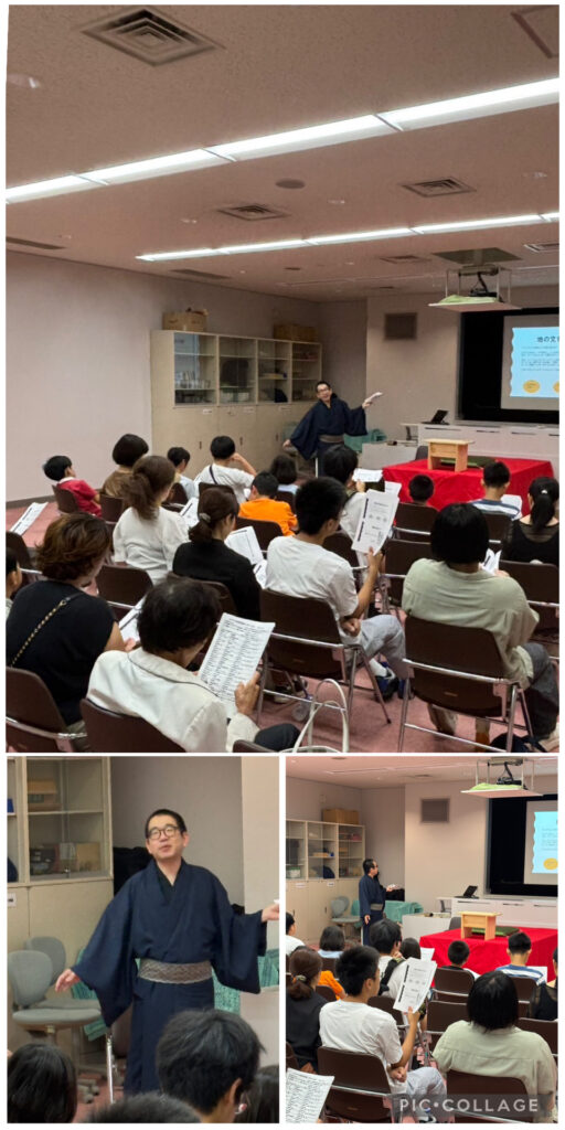 そして本日のメインは、講談「愛宕山梅花折り取り(出世の石段)」の冒頭を、実際にみんなで読み合わせ。子どもたちはそれぞれの工夫をこらして挑戦してくれて、聞いているこちらも「なるほど、そういう読み方もあるのか」と新しい発見がありました。