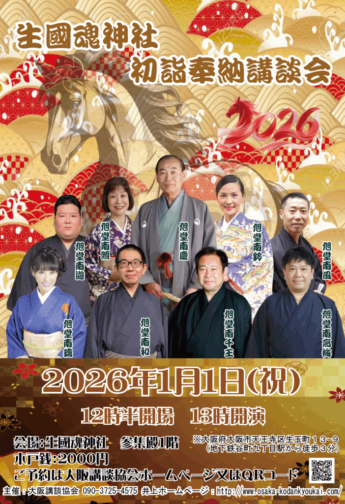 | イベント詳細 | 新年恒例の初詣奉納講談会を、生國魂神社にて開催いたします。 |